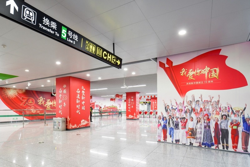18753喜迎新中國成立70周年 鄭州地鐵中國紅閃耀綠城